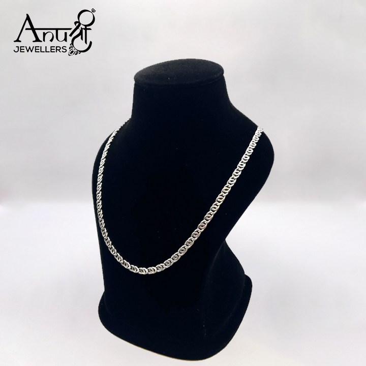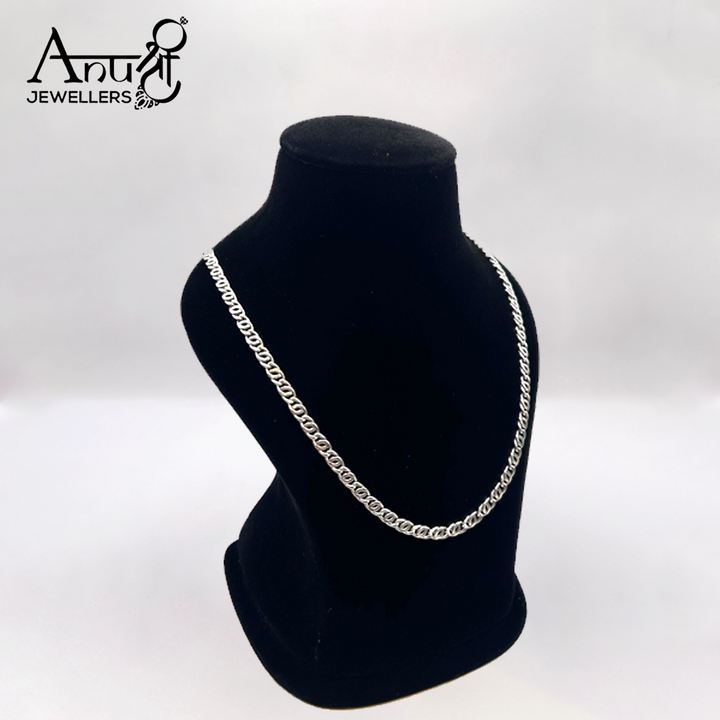 Stand out with this bold and stylish silver chain from Anushree Jewellers, crafted with a chunky oval-link design for maximum impact. Its polished shine and sturdy craftsmanship make it an ideal choice for fashion-forward individuals. Perfect to wear solo for a statement look or paired with pendants for a personalized touch, this unisex chain is a must-have for your jewelry collection.