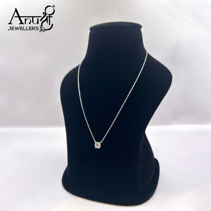 Bring timeless elegance to your jewelry collection with this Silver Solitaire Pendant Necklace from Anushree Jewellers. Featuring a sparkling solitaire-style pendant on a delicate chain, this necklace exudes sophistication and charm—perfect for both everyday wear and special occasions.