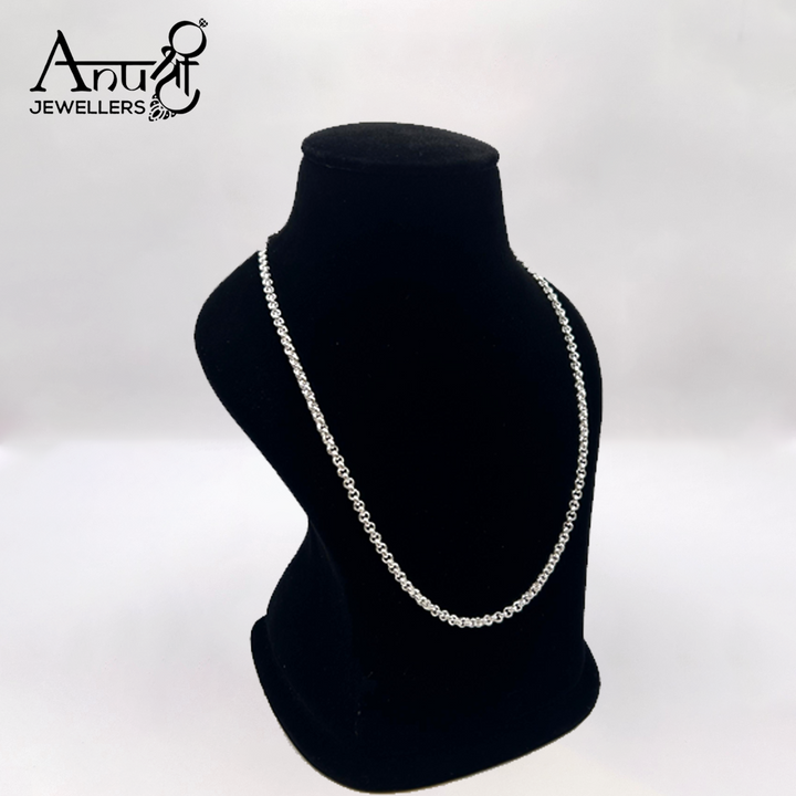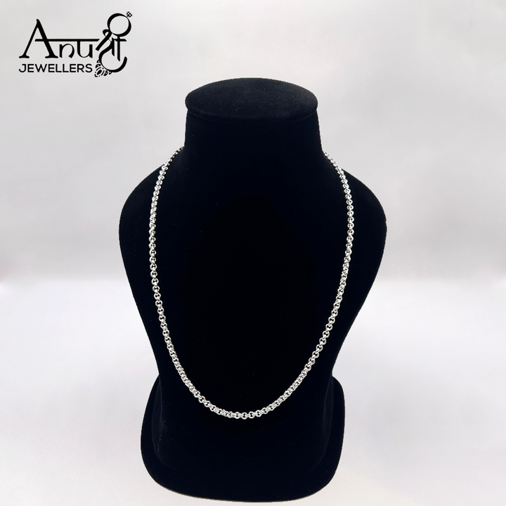 Add timeless charm to your collection with this silver round-link chain from Anushree Jewellers. Featuring interlocked circular links with a fine polish, this chain strikes the perfect balance between simplicity and sophistication. Its lightweight yet durable design makes it ideal for everyday wear, while its versatile style allows it to be paired with both casual and festive outfits