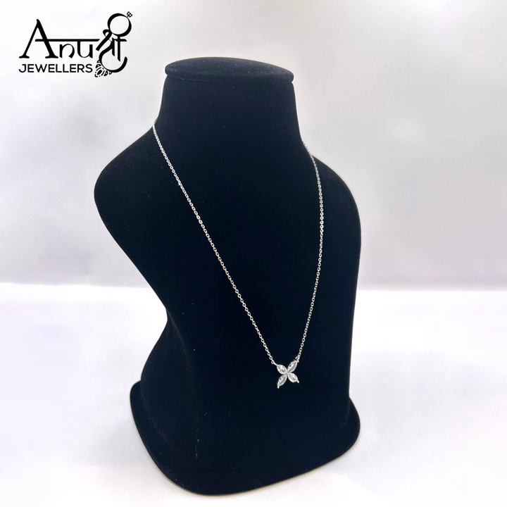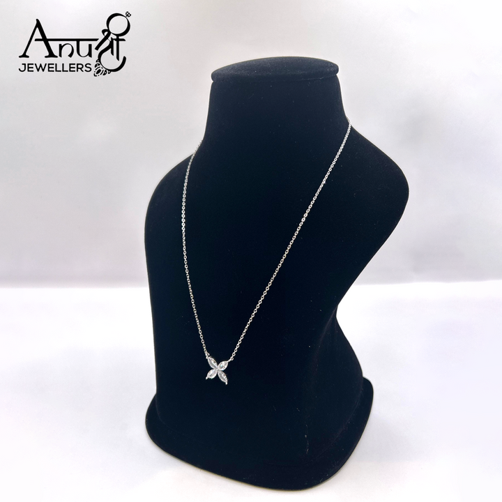 Add a touch of nature-inspired beauty to your collection with this Floral Leaf Design Pendant Necklace from Anushree Jewellers. Crafted with precision, the pendant features four sparkling marquise-cut stones arranged in a graceful floral pattern, symbolizing elegance, growth, and charm.