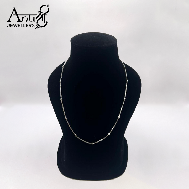 Minimalist silver chain with delicate bead accents, designed for everyday elegance. A versatile jewelry piece that adds a subtle touch of sophistication, perfect for layering or wearing solo.