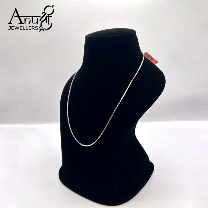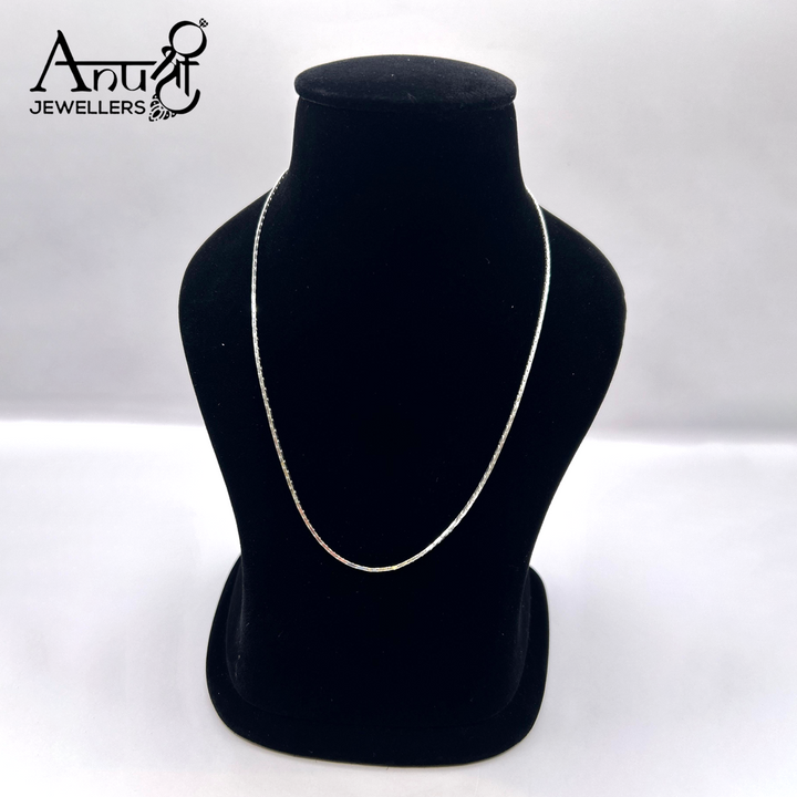 Add elegance and versatility to your jewelry collection with this sleek silver chain from Anushree Jewellers. Crafted with a smooth and polished finish, this lightweight chain is ideal for everyday wear, layering with pendants, or pairing with other accessories. Its timeless design makes it suitable for both men and women.