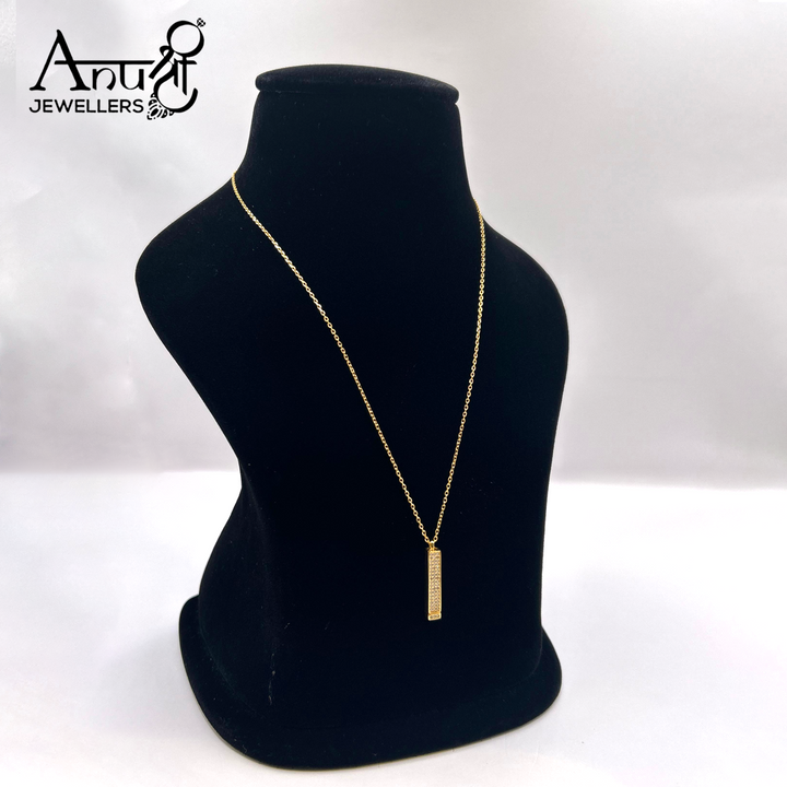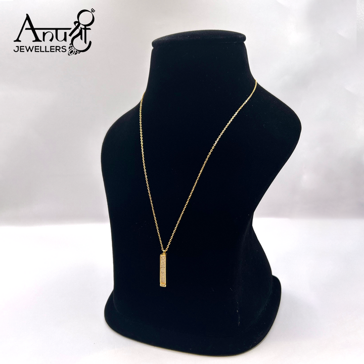 Make a stylish statement with this gold bar pendant necklace from Anushree Jewellers. Featuring a sleek rectangular pendant on a fine gold chain, this design blends modern minimalism with timeless elegance. Lightweight and versatile, it’s perfect for daily wear, parties, or gifting.