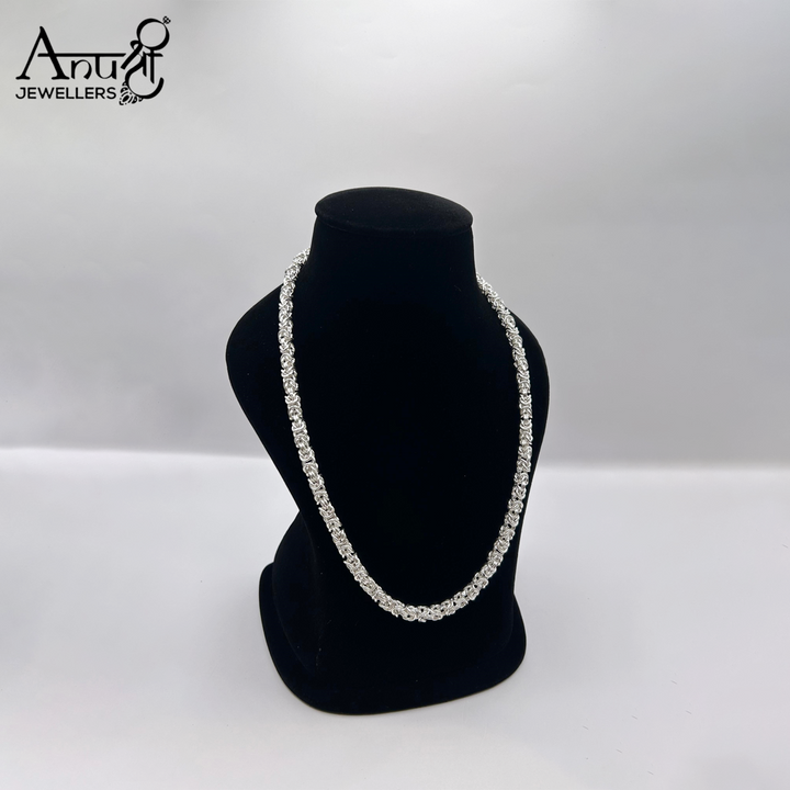 Embrace understated elegance with this graceful Silver Byzantine Chain Necklace. Its delicately woven design creates a gentle shimmer that catches the light softly, bringing a touch of quiet sophistication to any moment.