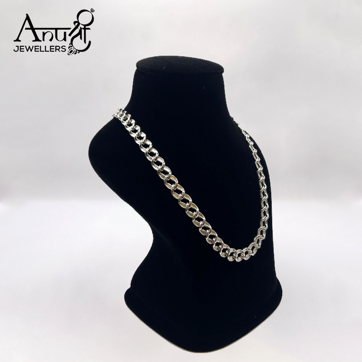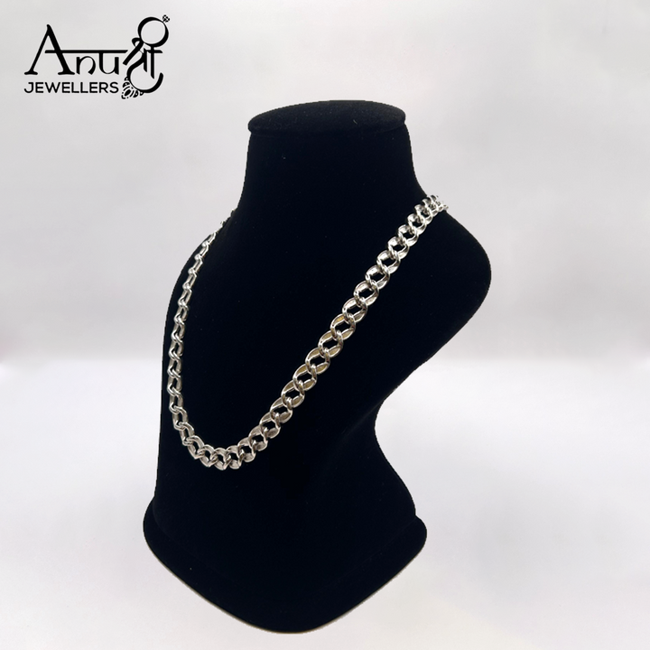 Make a powerful statement with this classic silver curb chain from Anushree Jewellers. Designed with interlocking flat links, this chain exudes strength, durability, and timeless style. Perfect for both everyday wear and special occasions, it adds a bold edge to any outfit.