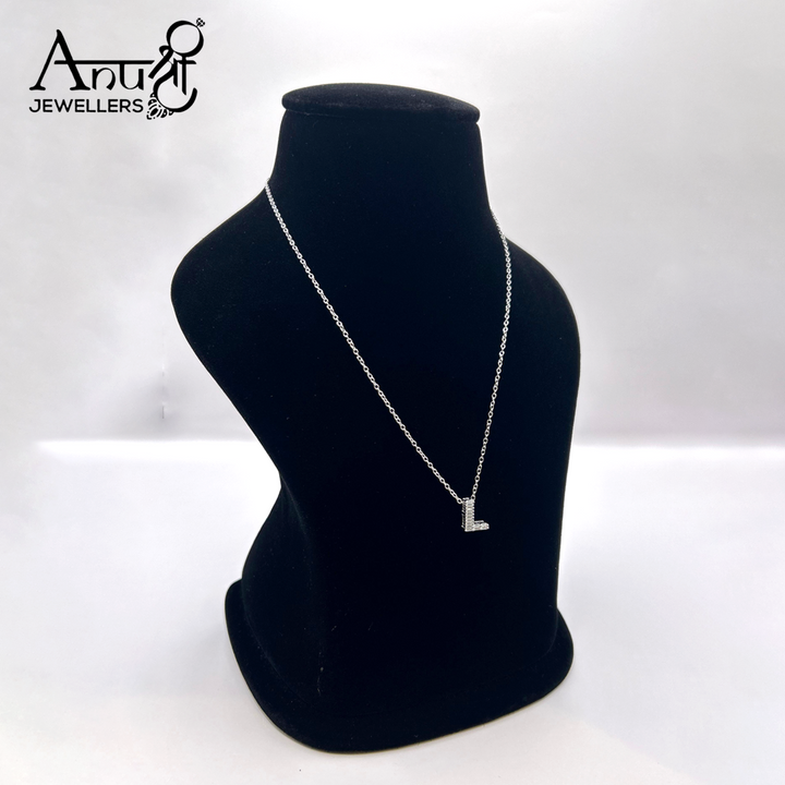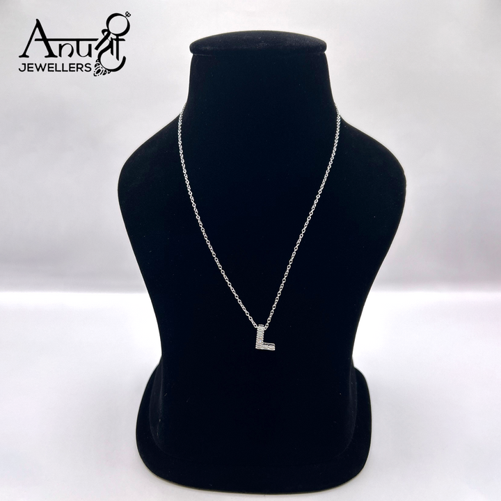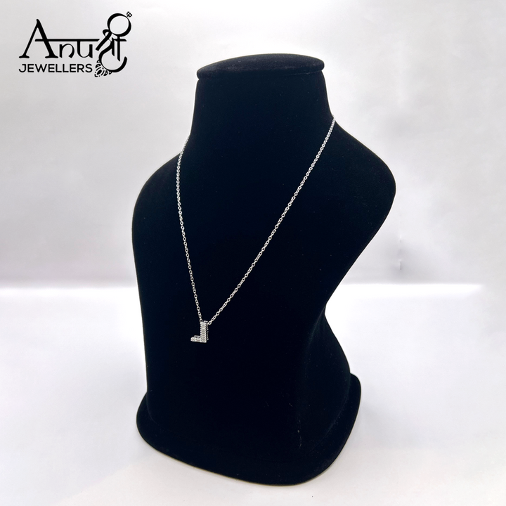 Embrace elegance and individuality with this Silver Initial "L" Pendant Necklace from Anushree Jewellers. Designed with a minimalist chain and a sparkling “L” pendant, this piece blends timeless beauty with a personal touch. Its versatile design makes it suitable for everyday wear as well as special occasions.