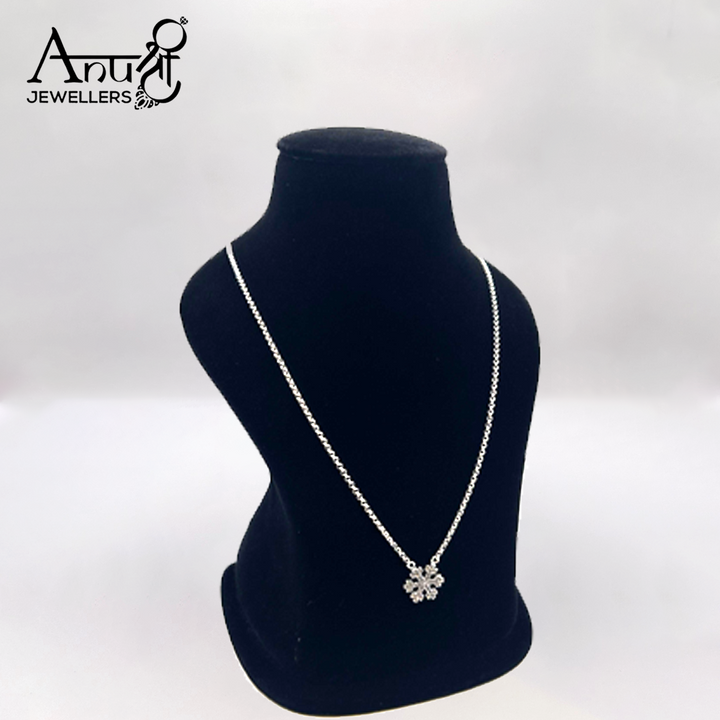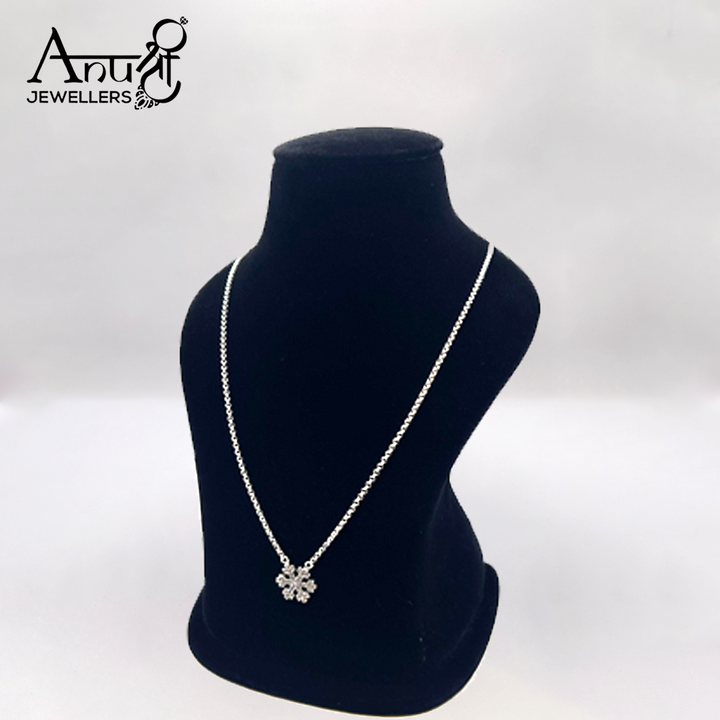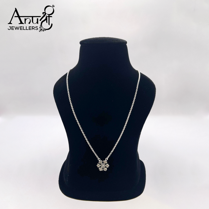 Bring elegance to your look with this silver chain, adorned with a sparkling floral-shaped pendant. Its delicate design makes it a versatile choice for casual wear, festive outings, and gifting.