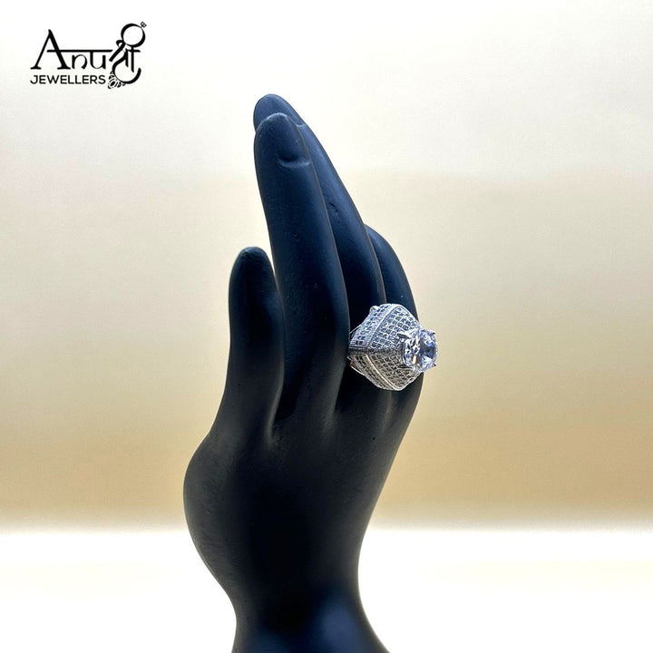 Experience maximum brilliance with this oversized statement ring. A dazzling round center stone is surrounded by a magnificent, square pavé cluster on a wide split shank. This piece delivers spectacular, icy sparkle for any grand occasion.