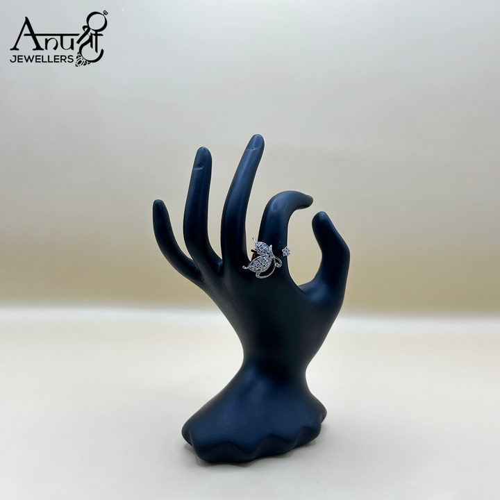 Let your style take flight with this enchanting butterfly-themed ring. The design features a delicate butterfly motif, with the body and antennae crafted from brilliant white crystal accents, and the wings beautifully detailed with a deep ruby-red stone on one side. The split shank band also features white stone accents, adding extra sparkle. Set in a bright silver-toned finish, this whimsical ring is a charming statement piece, perfect for gifting, adding a feminine touch to any outfit, or celebrating a love for nature-inspired jewelry.