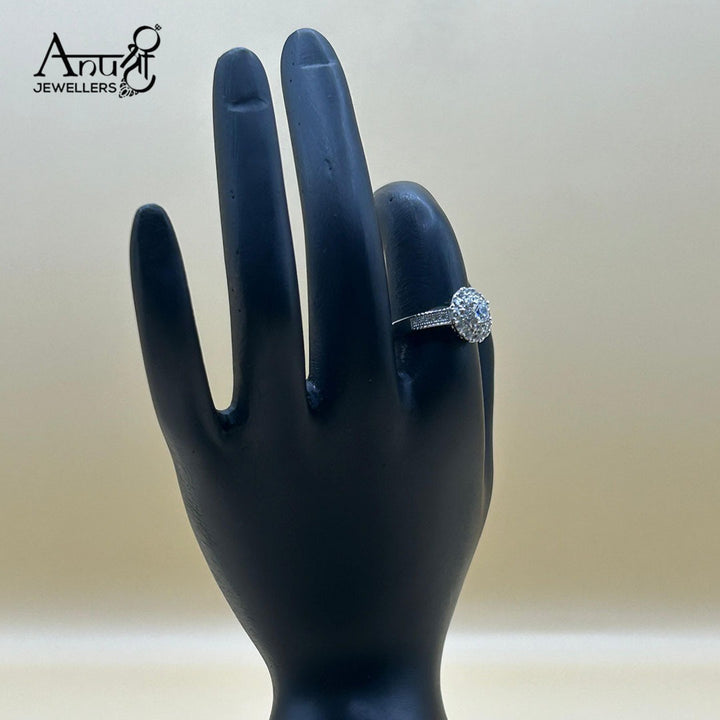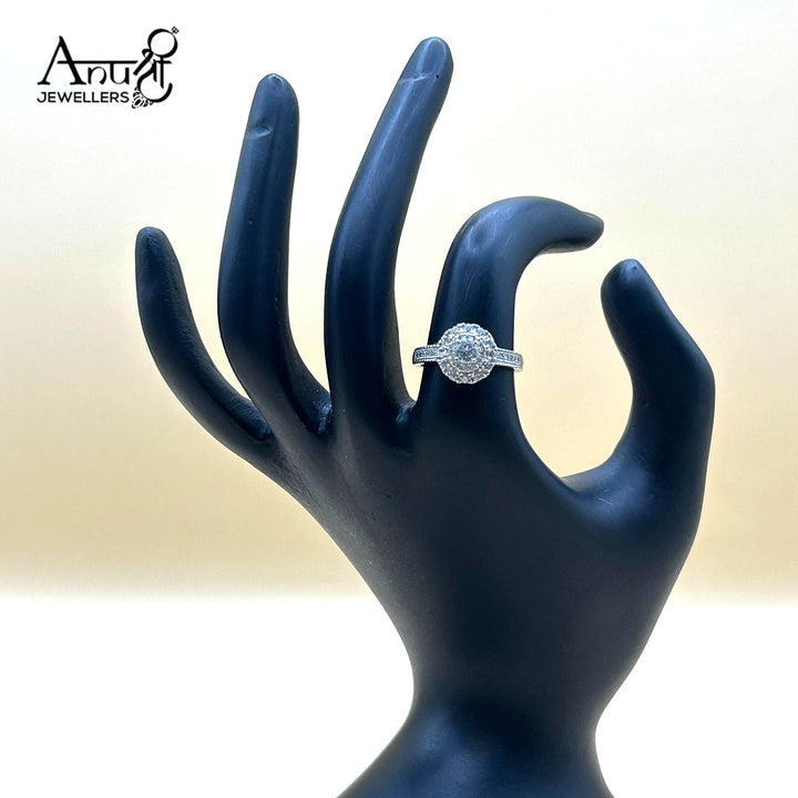 This brilliant silver-toned ring features a dazzling round center cluster of stones, framed by a shimmering halo. The slim band is also accented with pave-set stones, maximizing sparkle. It's a classic, elegant piece that offers substantial brilliance.