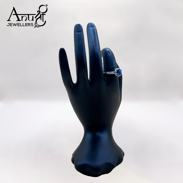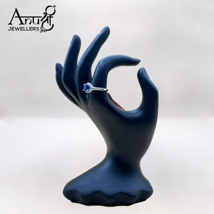 This delicate silver ring features a stunning blue gemstone centerpiece set in a classic solitaire design. The lightweight 2.8-gram construction offers comfortable everyday wear while the sparkling blue stone adds elegance and sophistication to any outfit.