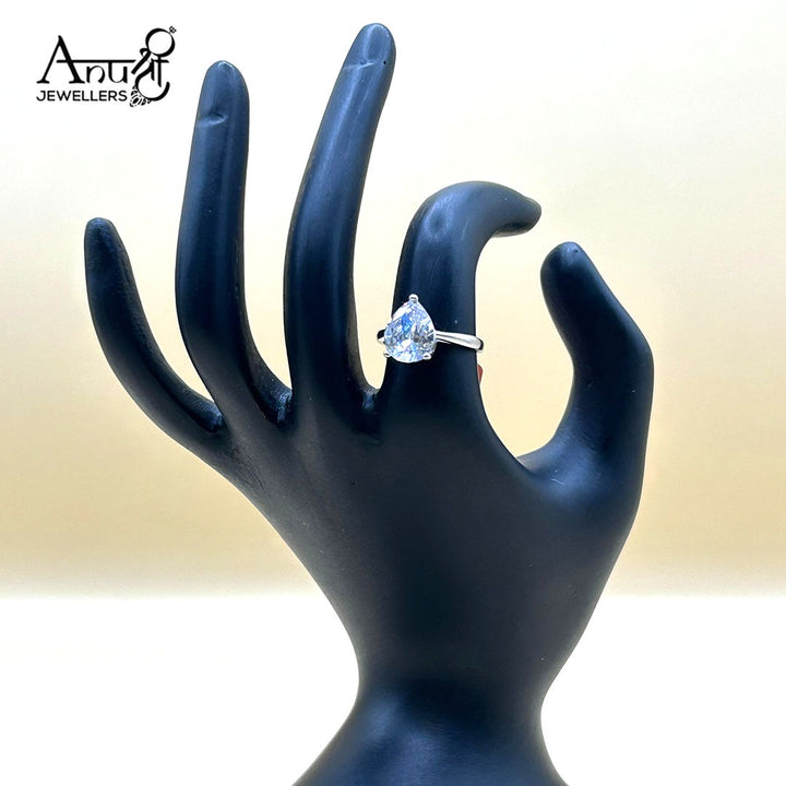 This elegant silver-toned ring showcases a brilliant, large pear-cut center stone set in a simple four-prong design. The smooth, dainty band allows the unique brilliance and shape of the stone to take center stage, creating a timeless, graceful look.