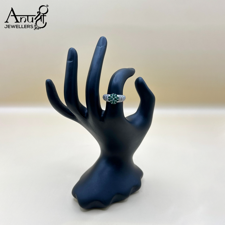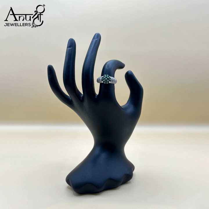 Embrace the look of royalty with this stunning ring. The centerpiece is a rich, oval or round-cut emerald-look stone surrounded by a brilliant halo of micro-pave crystal accents (or diamond-look stones). The halo design magnifies the size and brilliance of the central gem. Set in a gleaming silver-toned finish, this ring offers a bold, sophisticated statement, perfect for adding a touch of regal color and glamour to your formal wear or evening events.