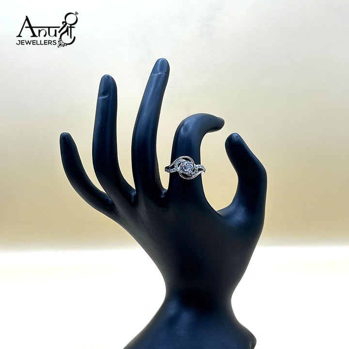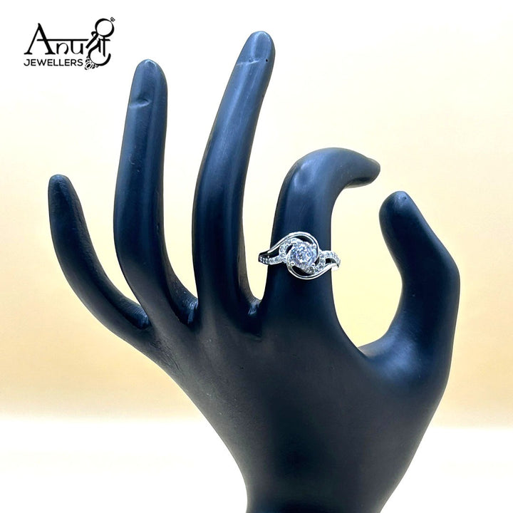 This silver-toned ring features a brilliant round center cluster stone, elegantly embraced by sweeping bypass shanks accented with pave-set clear stones. The fluid, asymmetrical design gives this piece a modern and sophisticated appeal.