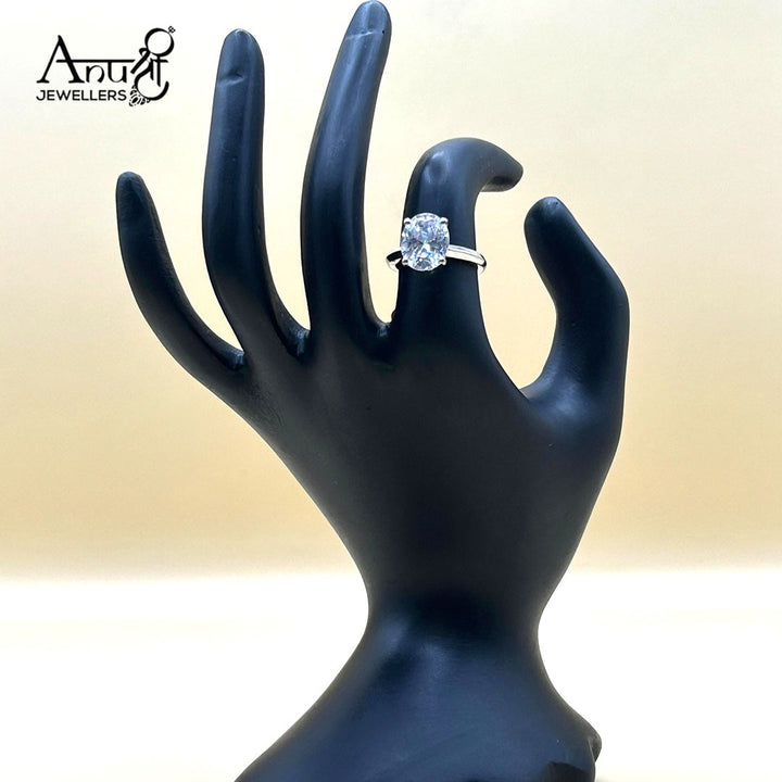 This dazzling silver-toned ring showcases a brilliant large oval-cut center stone set in a simple, high-polish band. The elegant, minimal setting allows the stone's exceptional size and fire to be the sole focus, creating a timeless, glamorous statement piece.