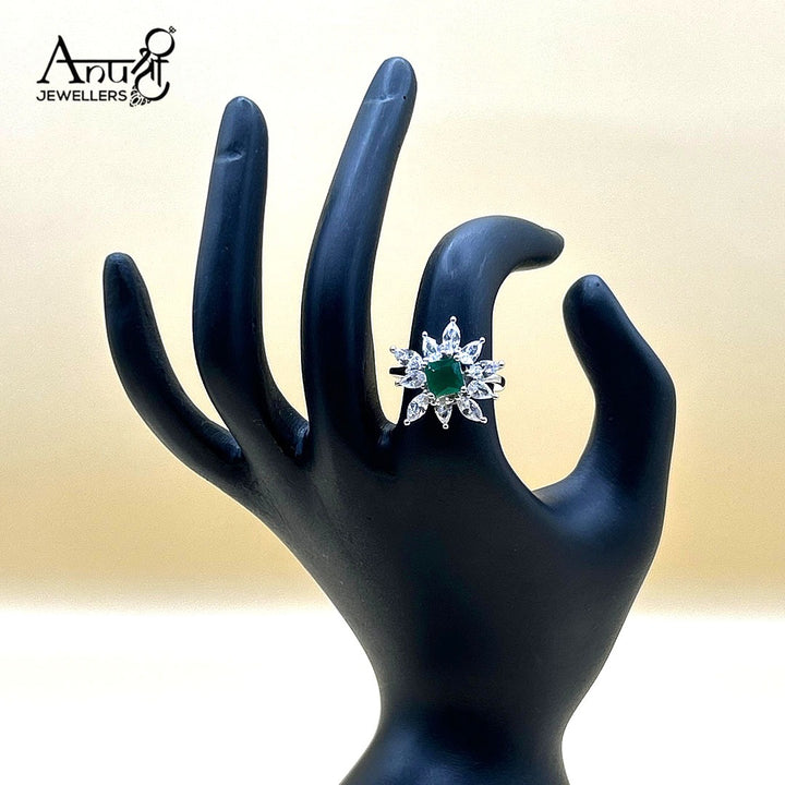 Channel natural elegance with this emerald-inspired cluster ring. A vivid square green center stone is surrounded by a dazzling starburst of marquise-cut white stones. This luxurious and bold design is perfect for captivating attention.