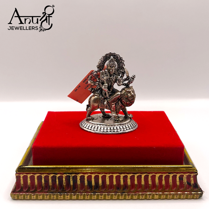 Invite divine energy and blessings into your home with this beautifully crafted Maa Durga idol, made with a fine silver-plated finish. Seated majestically on her lion vahana, the idol represents courage, protection, and victory over evil.