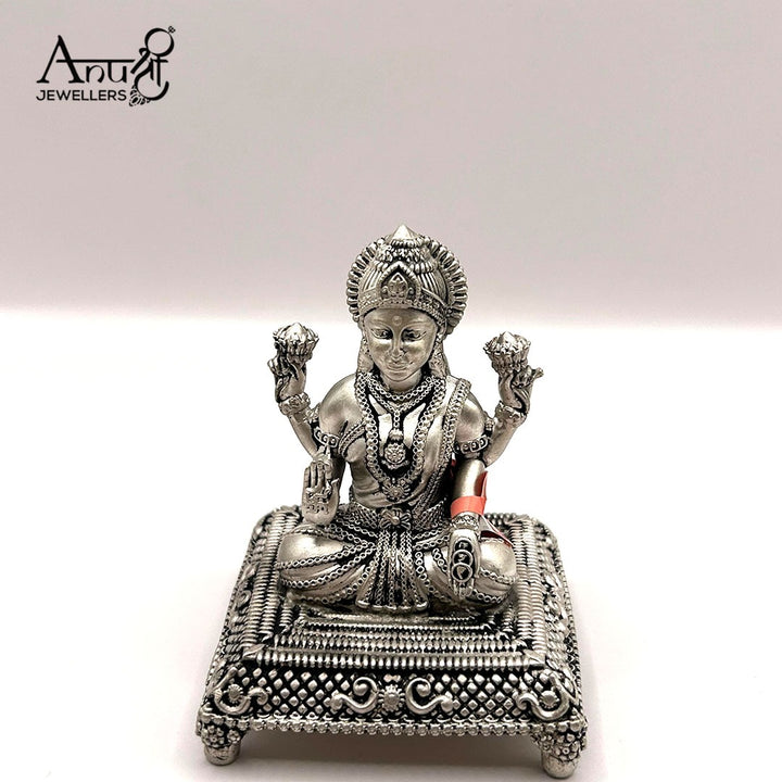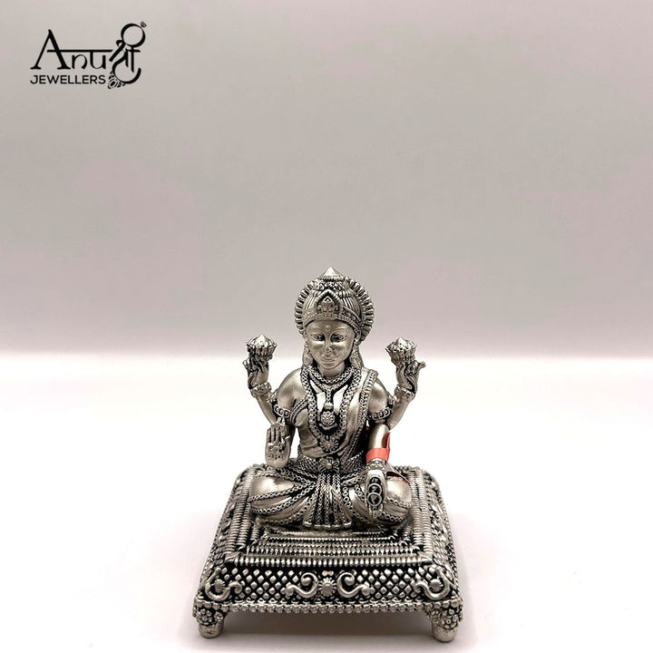 Auspicious Silver Goddess Lakshmi Idol. This exquisitely crafted idol of Goddess Lakshmi, the deity of wealth and prosperity, is a magnificent piece of fine devotional art. Weighing 169.000 grams, this beautiful figure is an auspicious addition to any sacred space.