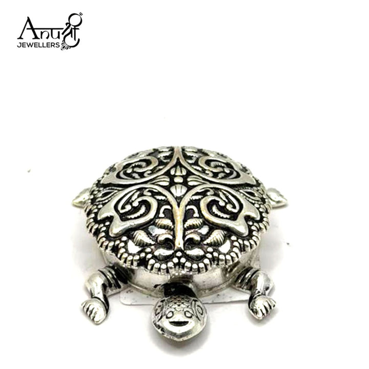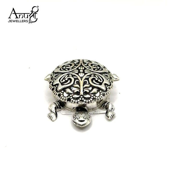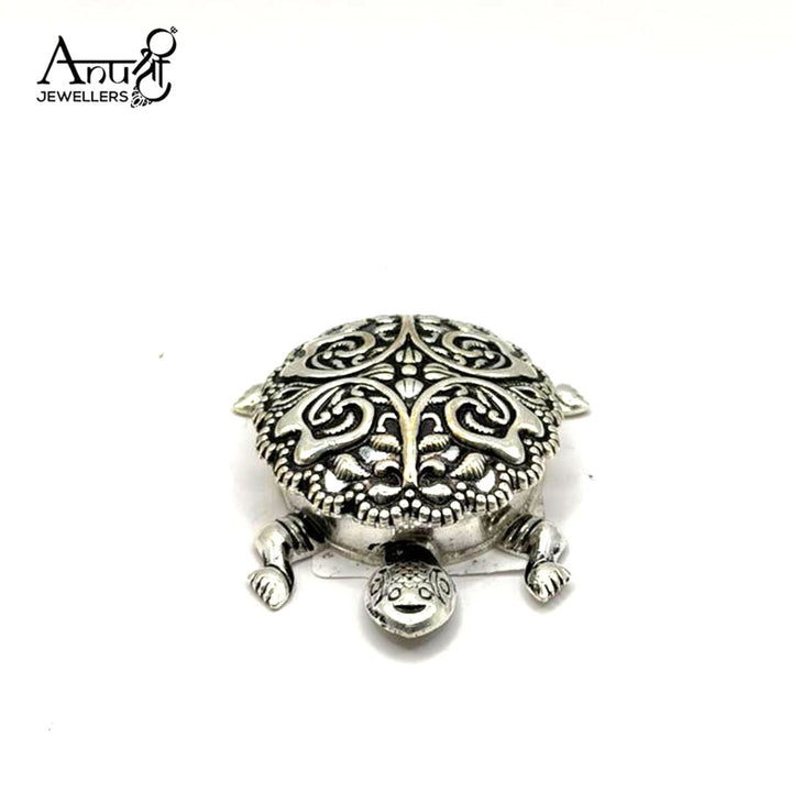 This beautifully crafted silver tortoise (Kachua) symbolizes longevity, stability, and good fortune according to Vastu. Weighing 22.000 grams, the idol features intricate traditional engravings on its shell, showcasing detailed craftsmanship. This auspicious piece from Anushree Jewellers is perfect for enhancing positive energy in your home or office.