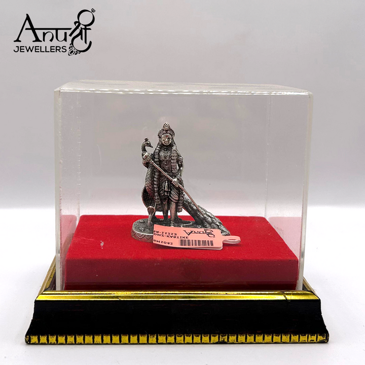 Bring home the divine energy of Lord Murugan (Kartikeya), the God of courage, wisdom, and victory. This intricately crafted silver-plated idol stands elegantly inside a transparent acrylic display case with a red velvet base and golden detailing.