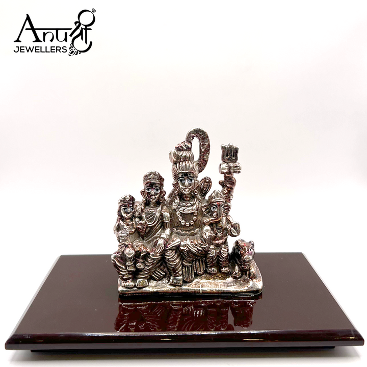 Silver-Plated Shiv Parivar Idol on Wooden Base