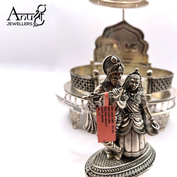 Silver Radha Krishna Idol under Canopy – Symbol of Eternal Love & Devotion